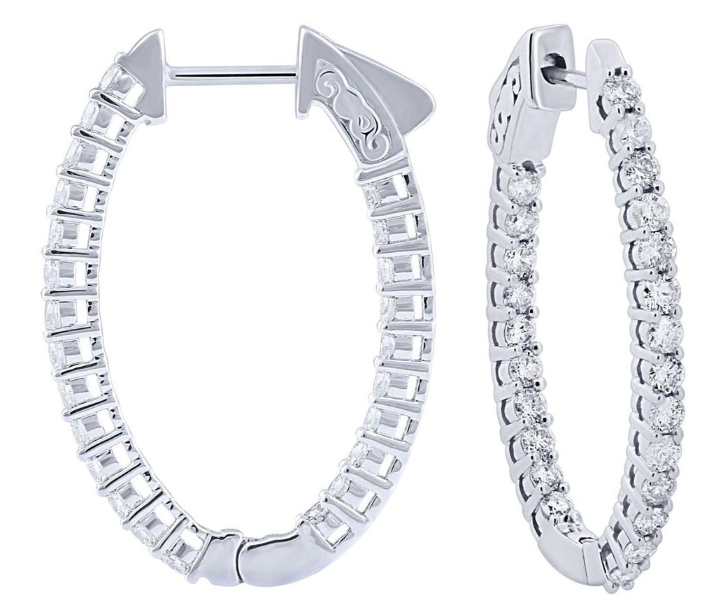 1.50CT DIAMOND 14KT WHITE GOLD SHARE PRONG OVAL INSIDE OUT HOOP HANGING EARRINGS
