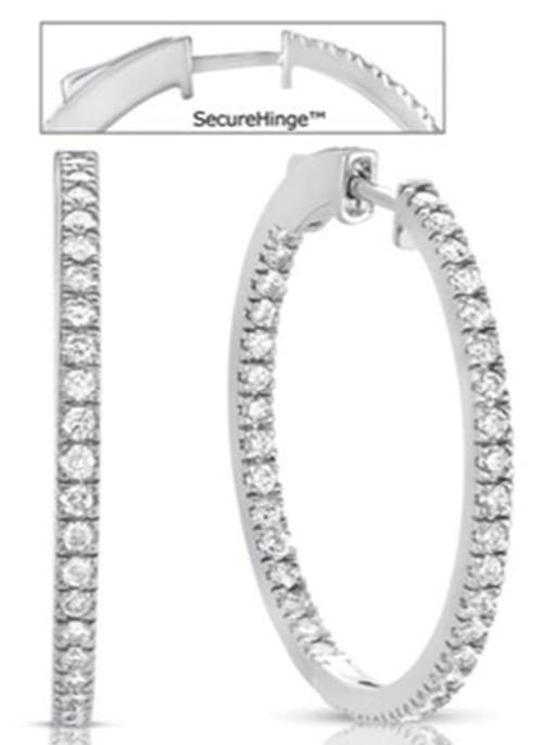 14KT WHITE GOLD HOOP HANGING EARRINGS. 3D CLASSIC ROUND INSIDE OUT FOUR PRONG DESIGN. DIAMONDS ARE F/G COLOR, VSSI CLARITY 1.63 CARATS. MEASURES 2mm WIDE. WRITTEN APPRAISAL AVAILABLE. COMES IN A PRESENTABLE GIFT BOX.