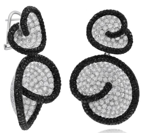 18KT WHITE GOLD FUN CLIP ON LOVE HANGING EARRINGS. 3D DOUBLE HEART DESIGN. WHITE DIAMONDS ARE F/G COLOR, VSSI CLARITY 9.3 CARATS. BLACK DIAMONDS ARE 8.05 CARATS.WRITTEN APPRAISAL AVAILABLE. COMES IN A PRESENTABLE GIFT BOX.