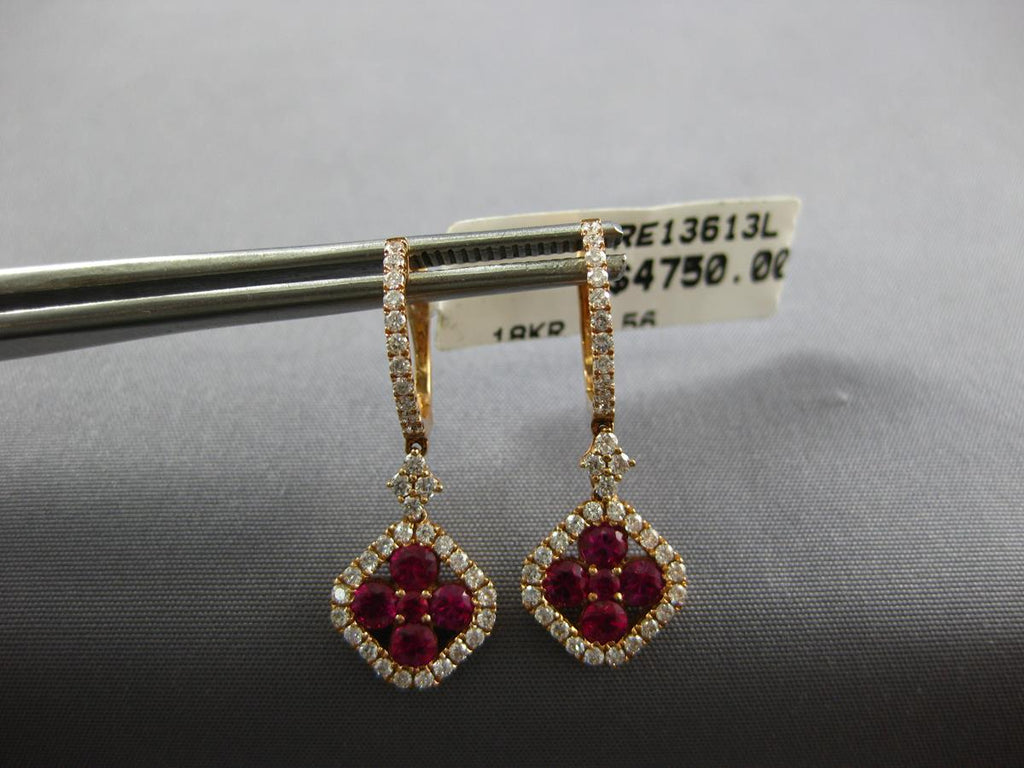 1.74CT DIAMOND & AAA RUBY 18K ROSE GOLD FLOWER SQUARE LEVERBACK HANGING EARRINGS