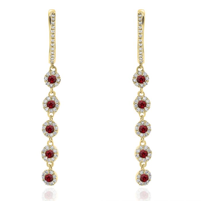 .71CT DIAMOND & AAA RUBY 14KT YELLOW GOLD MULTI FLOWER JOURNEY HANGING EARRINGS