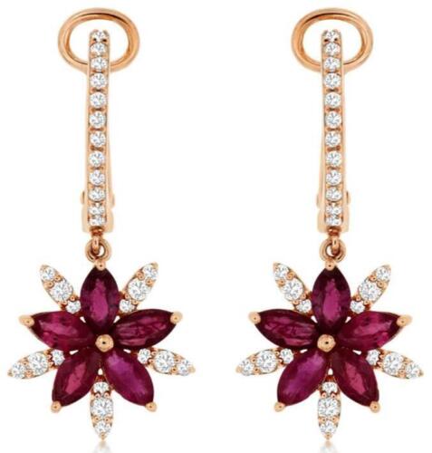 2.01CT DIAMOND & AAA RUBY 14KT ROSE GOLD 3D MARQUISE FLOWER FUN HANGING EARRINGS