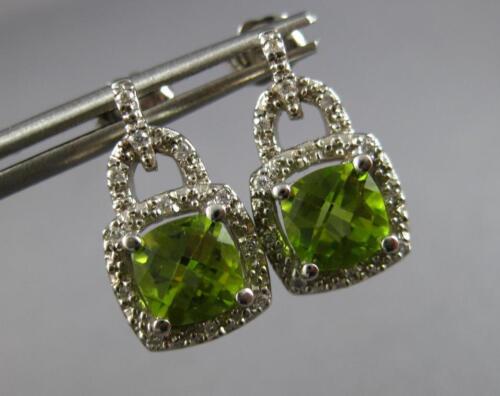 2.02CT DIAMOND & AAA PERIDOT 14KT WHITE GOLD 3D CUSHION & ROUND HANGING EARRINGS