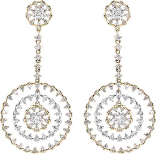 2.03CT DIAMOND 14K 2 TONE GOLD MULTI CIRCULAR FLOWER CHANDELIER HANGING EARRINGS