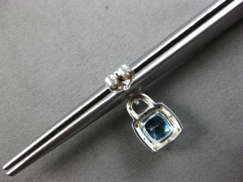 2.07CT DIAMOND & AAA BLUE TOPAZ 14KT WHITE GOLD CUSHION & ROUND HANGING EARRINGS