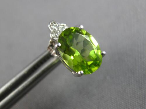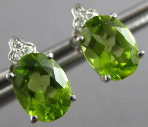 14KT WHITE GOLD STUD EARRINGS. 3D FLOWER DESIGN. ROUND DIAMONDS ARE F/G COLOR, VSSI CLARITY .03 CARATS. AAA EXTRA FACETED OVAL PERIDOTS ARE 2.05 CARATS. MEASURES 11MM X 16MM. WRITTEN APPRAISAL AVAILABLE. COMES IN A PRESENTABLE GIFT BOX.