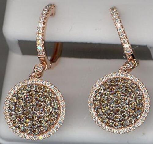 14KT ROSE GOLD HUGGIE HANGING EARRINGS. 3D CLUSTER CIRCULAR FLOWER DESIGN. WHITE DIAMONDS ARE F/G COLOR, VSSI CLARITY .60 CARATS. CHOCOLATE FANCY DIAMONDS ARE 1.49 CARATS. WRITTEN APPRAISAL AVAILABLE. COMES IN A PRESENTABLE GIFT BOX.
