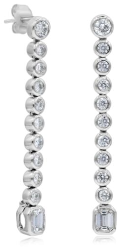 2.0CT DIAMOND 18KT WHITE GOLD 3D ROUND & BAGUETTE CLASSIC FUN HANGING EARRINGS