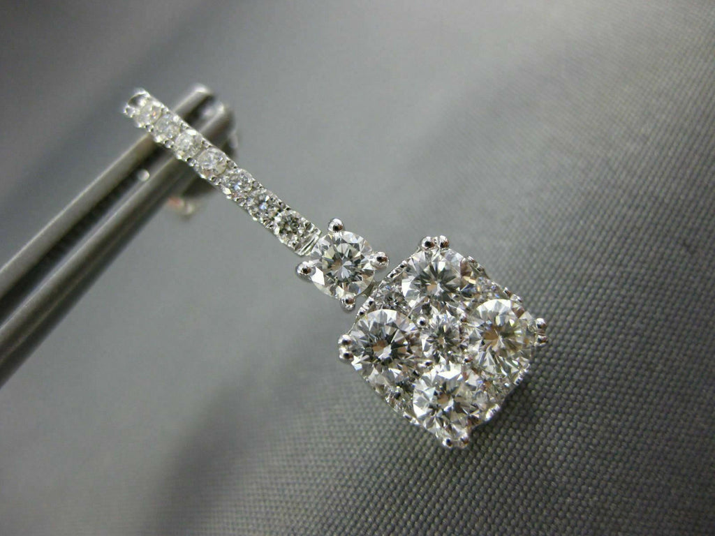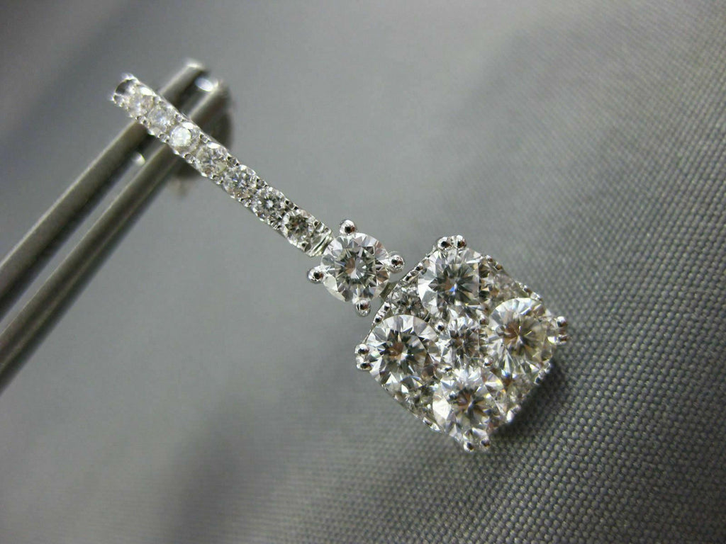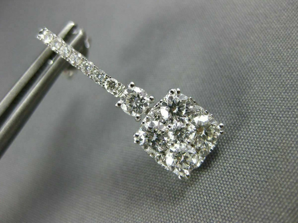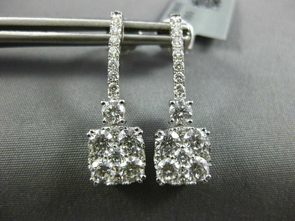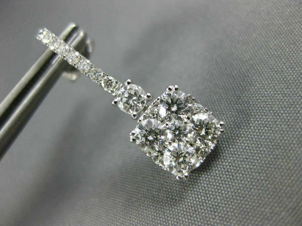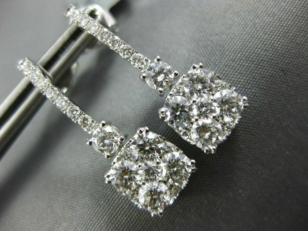 2.0CT DIAMOND 18KT WHITE GOLD 3D ROUND CLUSTER SQUARE CLASSIC HANGING EARRINGS