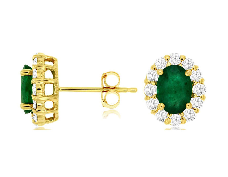 14KT YELLOW GOLD STUD EARRINGS. 3D CLASSIC FLOWER DESIGN. ROUND DIAMONDS ARE F/G COLOR, VSSI CLARITY .60 CARATS. AAA OVAL EMERALDS ARE 1.40 CARATS. WRITTEN APPRAISAL AVAILABLE. COMES IN A PRESENTABLE GIFT BOX.