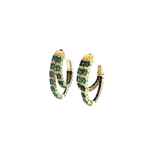 2.12CT DIAMOND & AAA EMERALD 18KT YELLOW GOLD 3D INSIDE OUT DOUBLE HOOP EARRINGS
