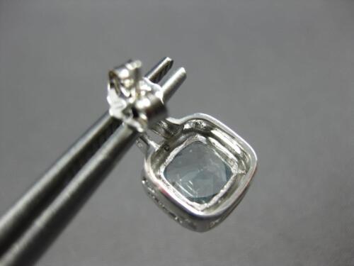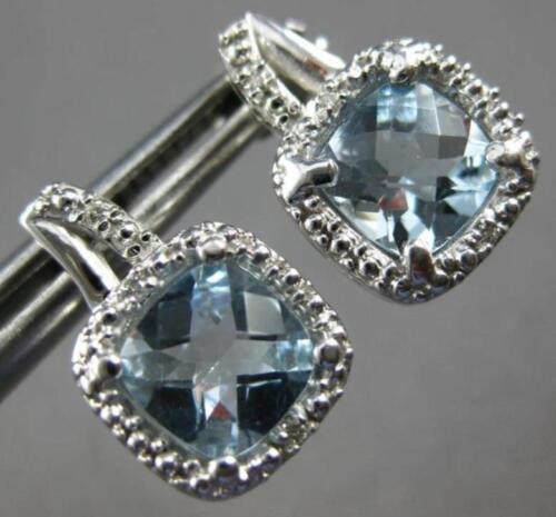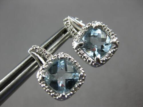 14KT WHITE GOLD HANGING EARRINGS. 3D HALO SQUARE DESIGN. ROUND DIAMONDS ARE F/G COLOR, VSSI CLARITY .03 CARATS. AAA EXTRA FACETED CUSHION CUT AQUAMARINE ARE 2.10 CARATS. MEASURES 13.5mm X 9mm. WRITTEN APPRAISAL AVAILABLE. COMES IN A PRESENTABLE GIFT BOX.