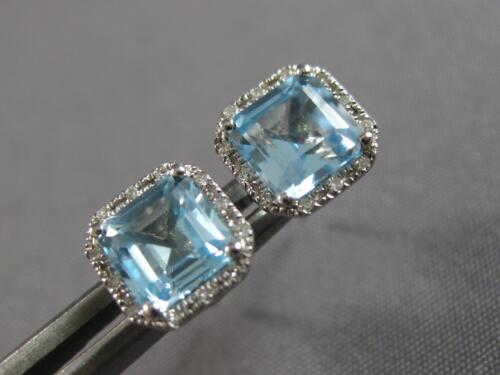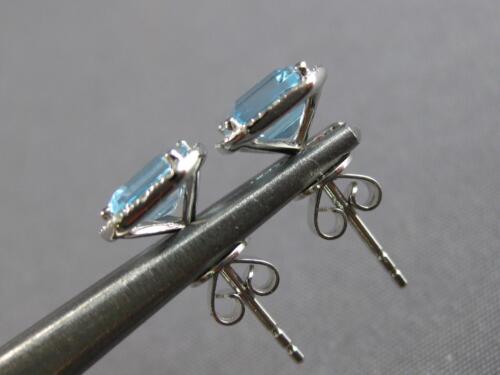 14KT WHITE GOLD STUD EARRINGS. 3D CLASSIC SQUARE OCTAGON DESIGN. ROUND DIAMONDS ARE F/G COLOR, VSSI CLARITY .06 CARATS. AAA EMERALD CUT AQUAMARINES ARE 2.10 CARATS. MEASURES 7.5mm WIDE. WRITTEN APPRAISAL AVAILABLE. COMES IN A PRESENTABLE GIFT BOX.