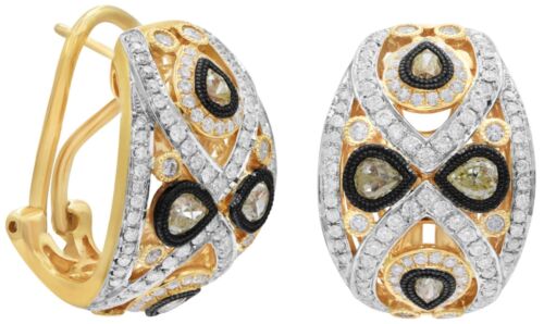 2.17CT WHITE & FANCY YELLOW DIAMOND 18K YELLOW GOLD 3D UMBRELLA CLIP ON EARRINGS