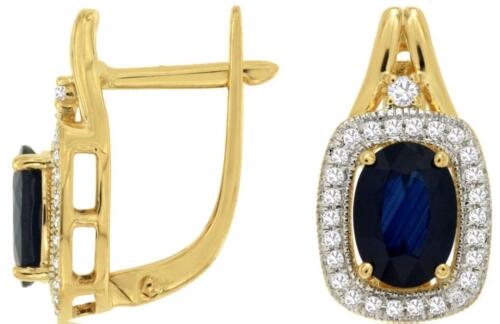 2.18CT DIAMOND & AAA SAPPHIRE 14KT YELLOW GOLD 3D OVAL & ROUND HANGING EARRINGS