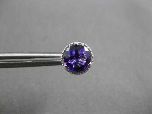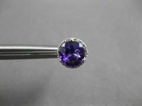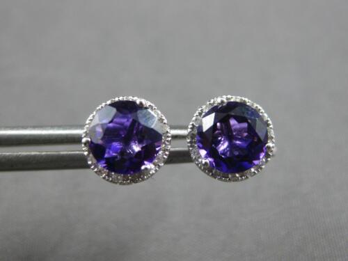 14KT WHITE GOLD STUD EARRINGS. 3D CLASSIC HALO DESIGN. ROUND DIAMONDS ARE F/G COLOR, VSSI CLARITY .70 CARATS. AAA EXTRA FACETED ROUND AMETHYSTS ARE 1.51 CARATS. MEASURES 7.5mm WIDE. WRITTEN APPRAISAL AVAILABLE. COMES IN A PRESENTABLE GIFT BOX.