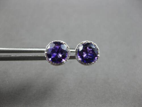 2.21CT DIAMOND & AAA AMETHYST 14K WHITE GOLD 3D ROUND CLASSIC HALO STUD EARRINGS