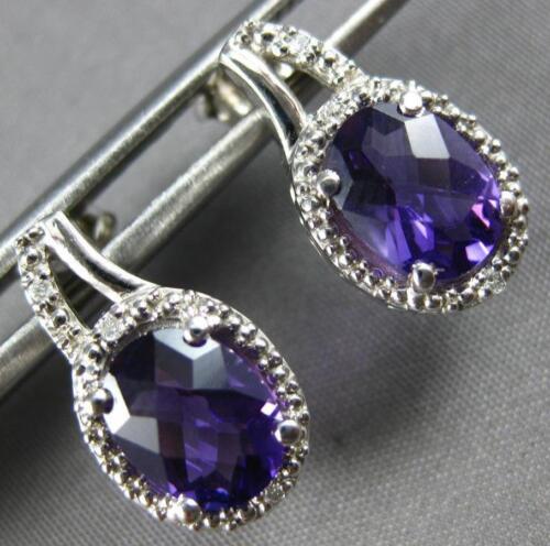 14KT WHITE GOLD FUN HANGING EARRINGS. 3D HALO DESIGN. ROUND DIAMONDS ARE F/G COLOR, VSSI CLARITY .03 CARATS. AAA EXTRA FACETED OVAL AMETHYSTS ARE 2.20 CARATS. MEASURES 16mm X 8.5mm. WRITTEN APPRAISAL AVAILABLE. COMES IN A PRESENTABLE GIFT BOX.