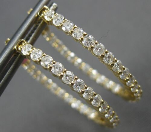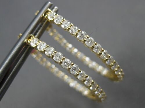 18KT YELLOW GOLD HOOP HANGING EARRINGS. 3D CLASSIC INSIDE OUT OVAL DESIGN. DIAMONDS ARE F/G COLOR, VVS-VS CLARITY 2.25 CARATS. MEASURES 27mm X 2mm. WRITTEN APPRAISAL AVAILABLE. COMES IN A PRESENTABLE GIFT BOX.