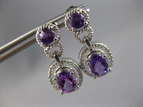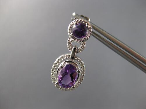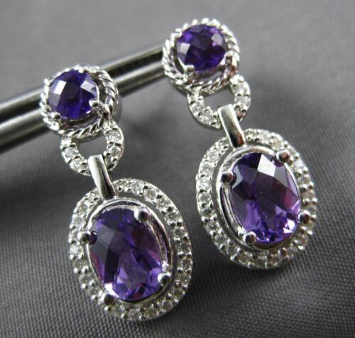 2.25CT DIAMOND & AAA AMETHYST 14KT WHITE GOLD OVAL & ROUND HALO HANGING EARRINGS
