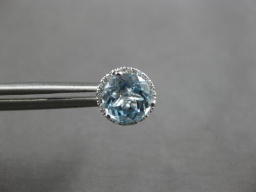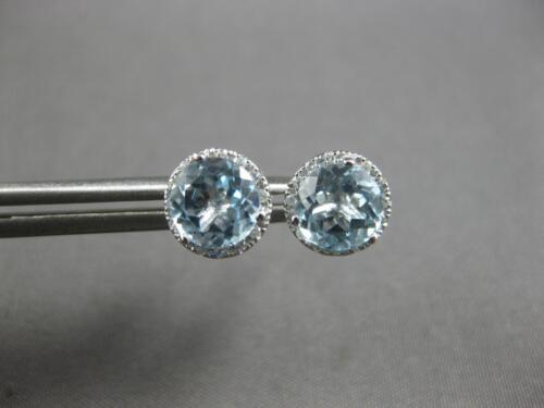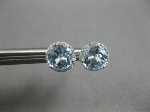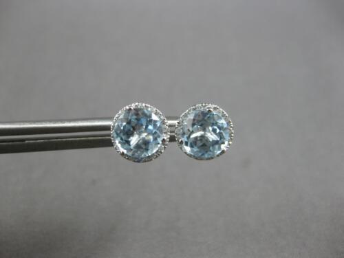 14KT WHITE GOLD STUD EARRINGS. 3D CLASSIC HALO DESIGN. ROUND DIAMONDS ARE F/G COLOR, VSSI CLARITY .07 CARATS. AAA EXTRA FACETED ROUND BLUE TOPAZ ARE 2.18 CARATS. MEASURES 7.5mm WIDE. WRITTEN APPRAISAL AVAILABLE. COMES IN A PRESENTABLE GIFT BOX.