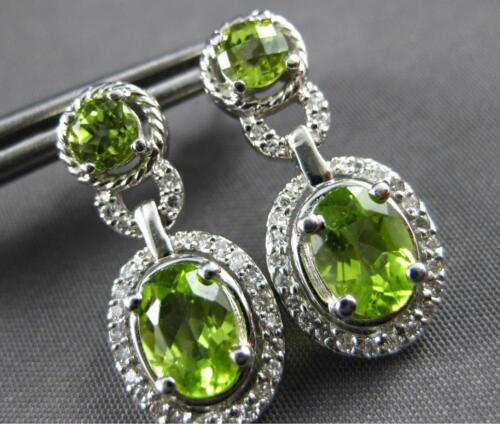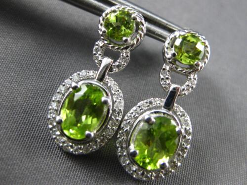 2.25CT DIAMOND & AAA PERIDOT 14KT WHITE GOLD OVAL & ROUND HALO HANGING EARRINGS