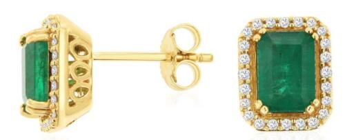 2.28CT DIAMOND & AAA EMERALD 14KT YELLOW GOLD SQUARE HALO OCTAGON STUD EARRINGS