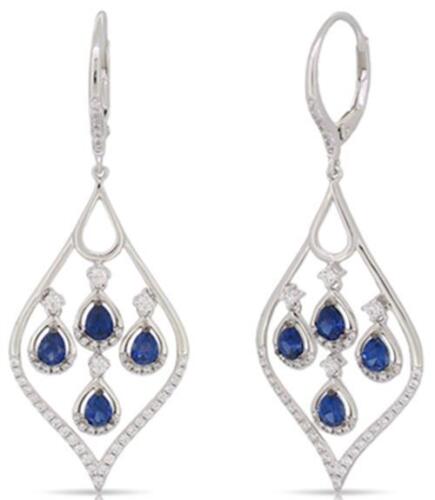 2.33CT DIAMOND & AAA SAPPHIRE 14KT WHITE GOLD MULTI TEAR DROP LEVERBACK EARRINGS