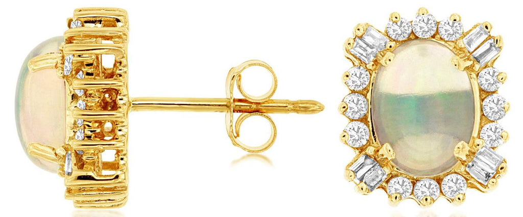 2.3CT DIAMOND & AAA OPAL 14K YELLOW GOLD OVAL ROUND & BAGUETTE CABOCHON EARRINGS