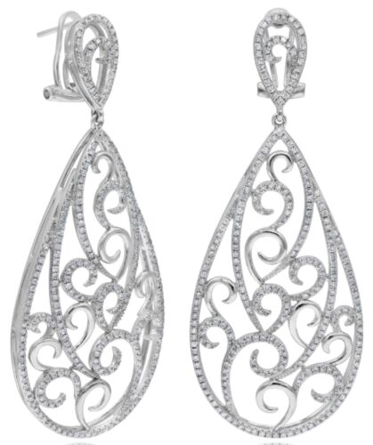 2.43CT DIAMOND 14KT WHITE GOLD 3D OPEN FILIGREE TEAR DROP FUN HANGING EARRINGS