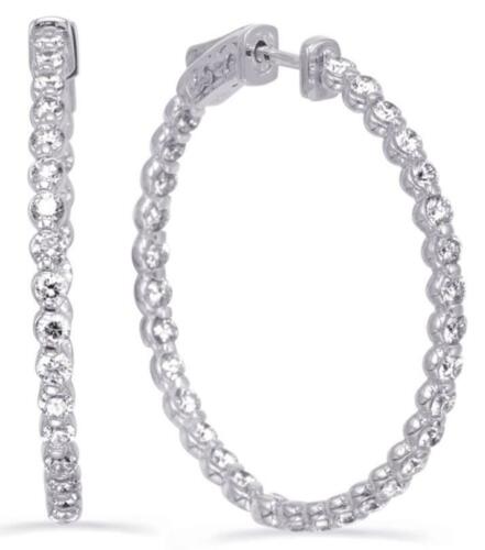 2.46CT DIAMOND 14KT WHITE GOLD 3D SHARED PRONG INSIDE OUT HOOP HANGING EARRINGS