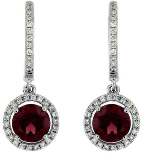 2.46CT DIAMOND & RHODOLITE 14KT WHITE GOLD CLASSIC ROUND HALO HANGING EARRINGS