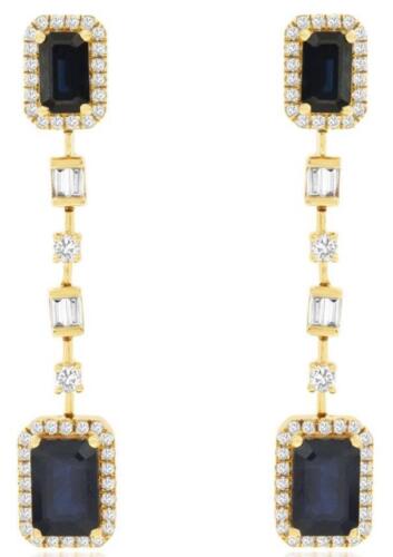 2.47CT DIAMOND & AAA SAPPHIRE 14KT YELLOW GOLD 3D BAGUETTE & ROUND FUN EARRINGS