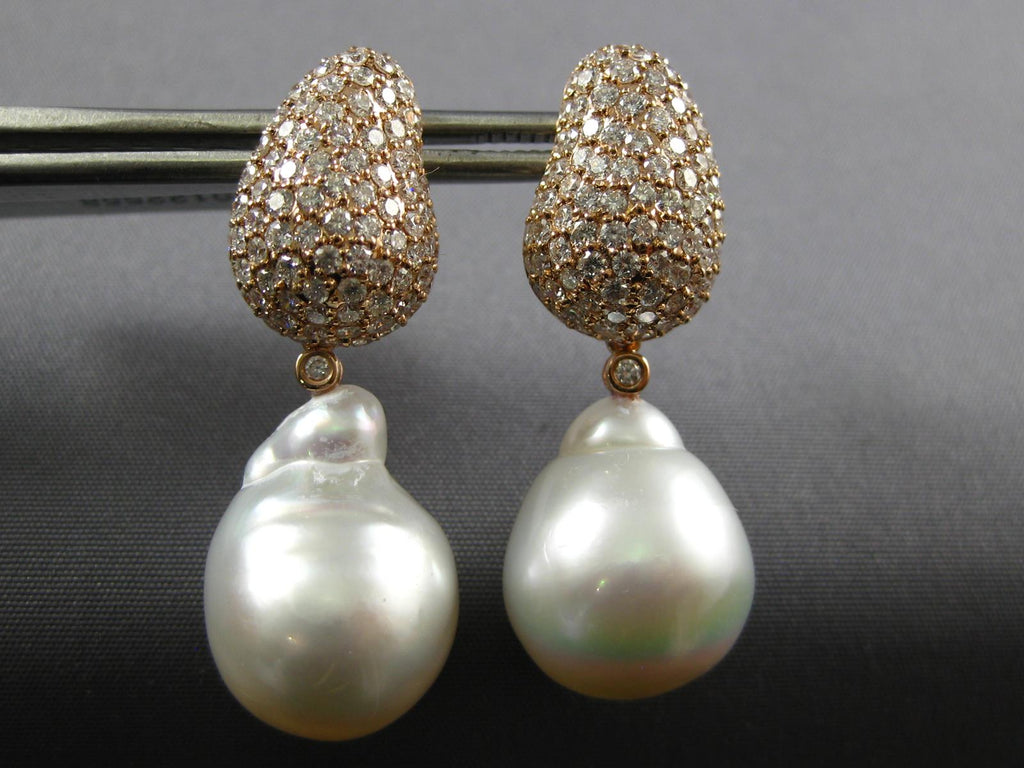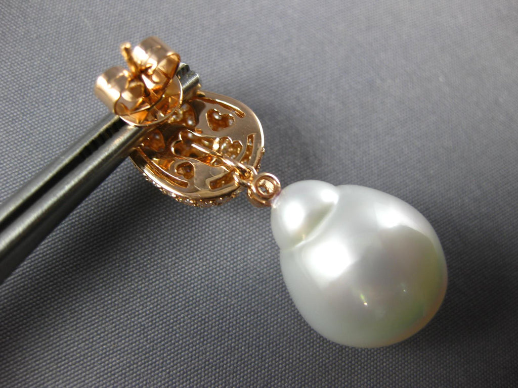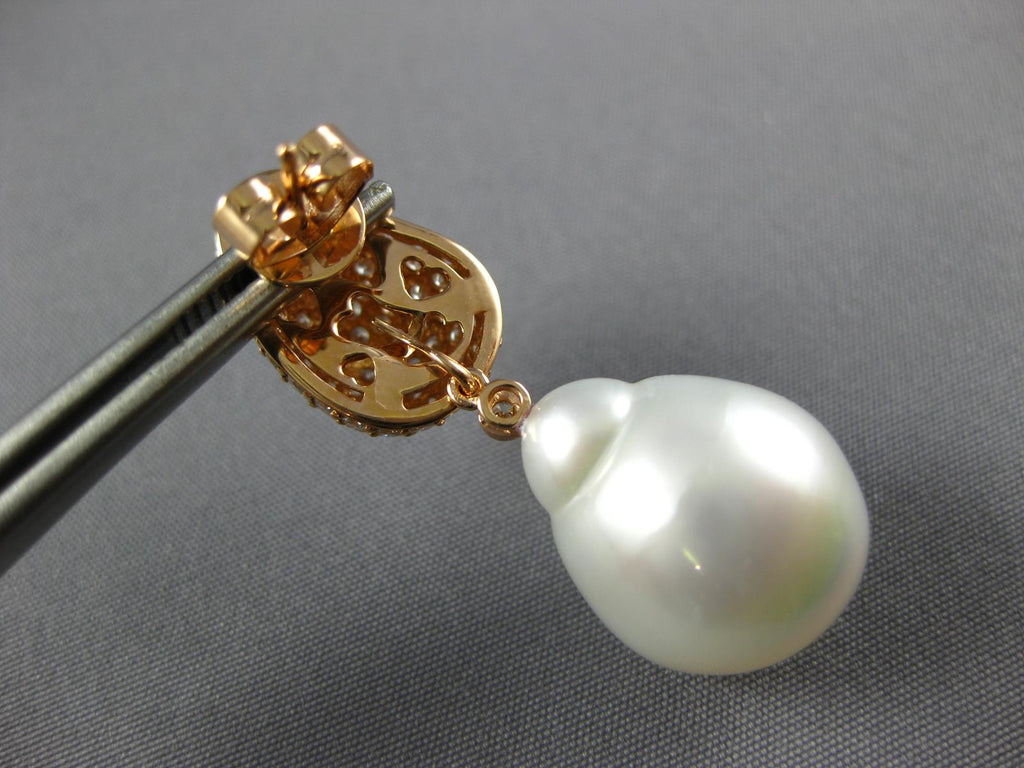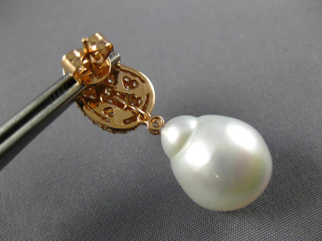 2.50CT DIAMOND & AAA SOUTH SEA PEARL 18K ROSE GOLD 3D TEAR DROP HANGING EARRINGS