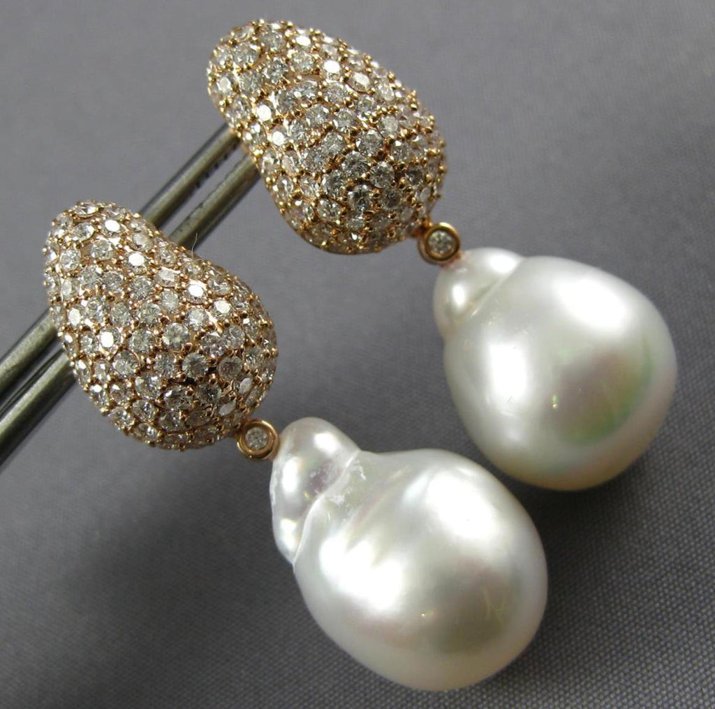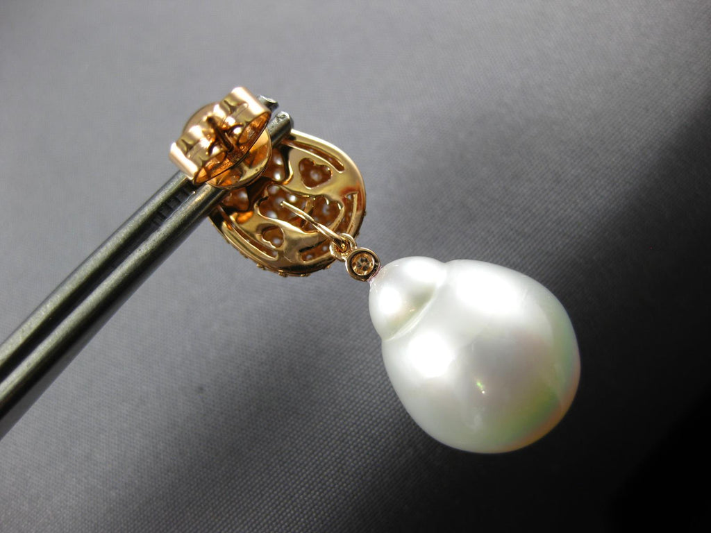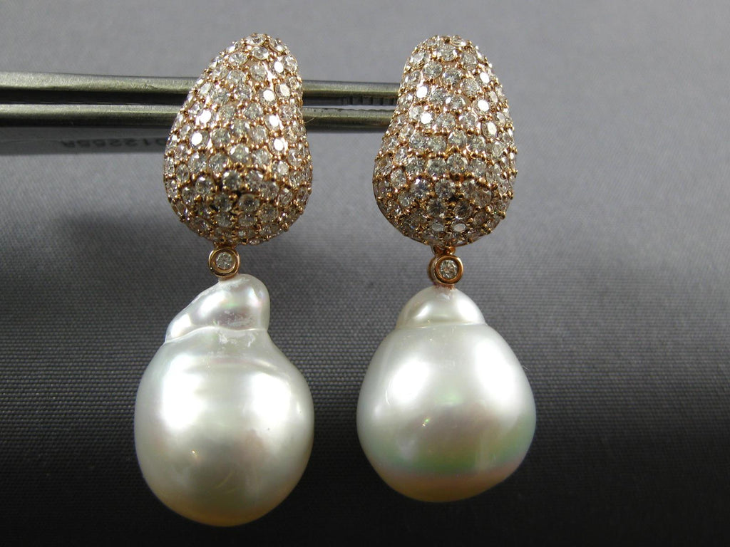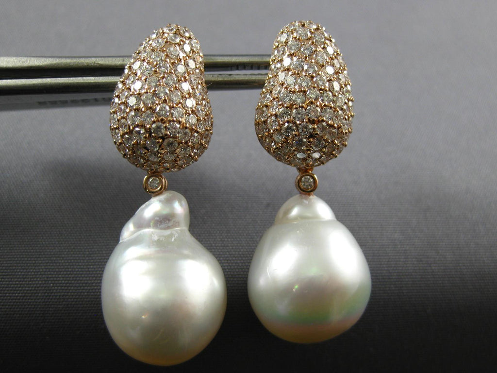 2.50CT DIAMOND & AAA SOUTH SEA PEARL 18K ROSE GOLD 3D TEAR DROP HANGING EARRINGS