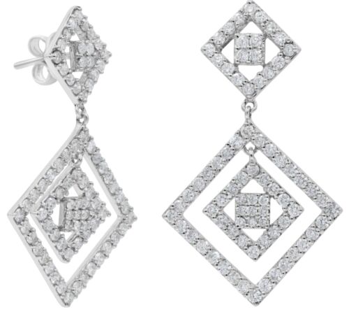 18KT WHITE GOLD FUN HANGING EARRINGS. 3D MULTI GEOMETRICAL DESIGN. ROUND DIAMONDS ARE F/G COLOR, VSSI CLARITY 2.51 CARATS.
