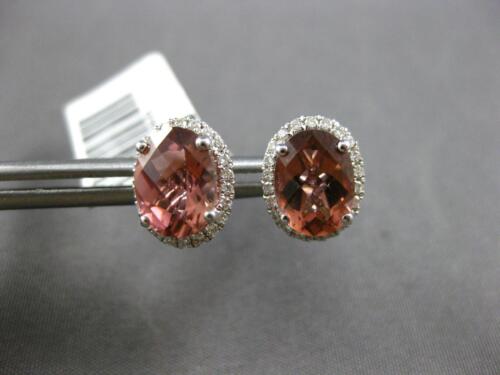 18KT WHITE GOLD STUD EARRINGS. 3D CLASSIC HALO DESIGN. ROUND DIAMONDS ARE F/G COLOR, VSSI CLARITY .19 CARATS. AAA EXTRA FACETED OVAL PINK TOURMALINES ARE 2.52 CARATS. MEASURES 10mm X 8 mm. WRITTEN APPRAISAL AVAILABLE. COMES IN A PRESENTABLE GIFT BOX.