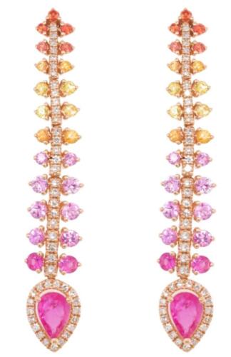 2.77CT DIAMOND & AAA MULTI COLOR SAPPHIRE 14KT YELLOW GOLD 3D TEAR DROP EARRINGS