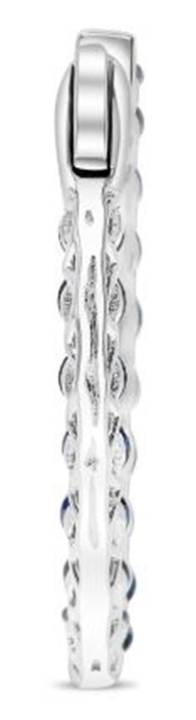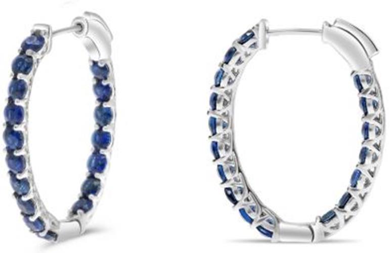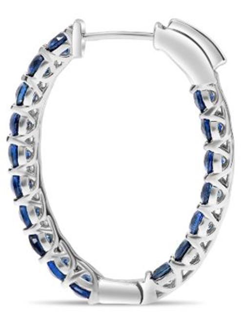 14KT WHITE GOLD HOOP HANGING EARRINGS. 3D INSIDE OUT CLASSIC LUCIDA DESIGN. AAA SAPPHIRES ARE 2.80 CARATS. MEASURES 25mm X 9mm. WRITTEN APPRAISAL AVAILABLE. COMES IN A PRESENTABLE GIFT BOX.