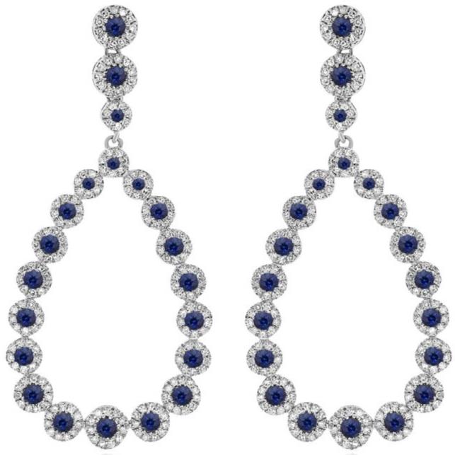 2.80CT DIAMOND & AAA SAPPHIRE 14KT WHITE GOLD 3D OPEN TEAR DROP HANGING EARRINGS