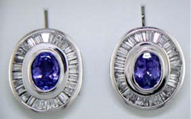 14KT WHITE GOLD HANGING EARRINGS. 3D FLOWER DESIGN. BAGUETTE DIAMONDS ARE F/G COLOR, VSSI CLARITY 1.25 CARATS. AAA OVAL TANZANITES ARE 1.60 CARATS. WRITTEN APPRAISAL AVAILABLE. COMES IN A PRESENTABLE GIFT BOX.
