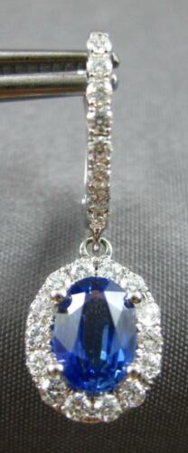 2.94CT DIAMOND & AAA CEYLON SAPPHIRE 14KT WHITE GOLD OVAL HALO HANGING EARRINGS