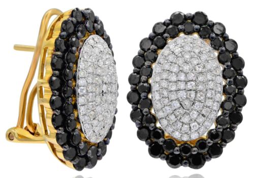 14KT YELLOW GOLD HANGING EARRINGS. 3D OVAL DOUBLE HALO FLOWER CLIP ON DESIGN. ROUND WHITE DIAMONDS ARE F/G COLOR, VSSI CLARITY .61 CARATS. ROUND BLACK DIAMONDS ARE 2.35 CARATS. WRITTEN APPRAISAL AVAILABLE. COMES IN A PRESENTABLE GIFT BOX.