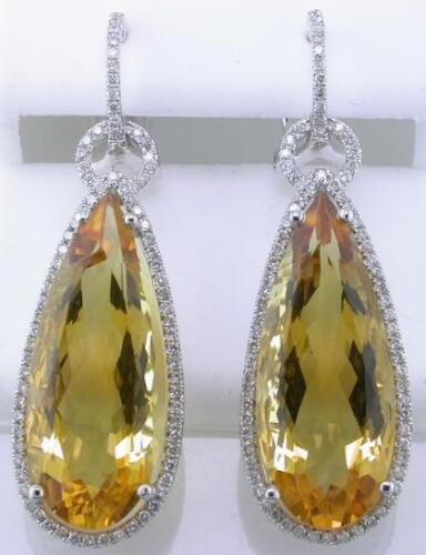20.35CT DIAMOND & AAA CITRINE 14K WHITE GOLD 3D PEAR SHAPE & ROUND HALO EARRINGS