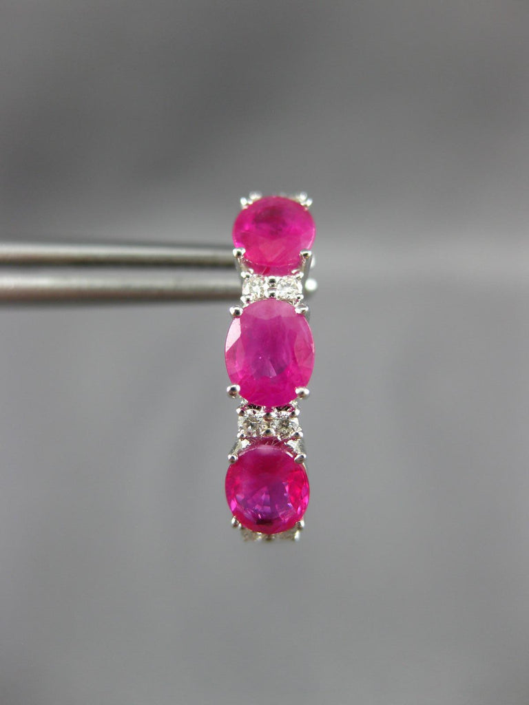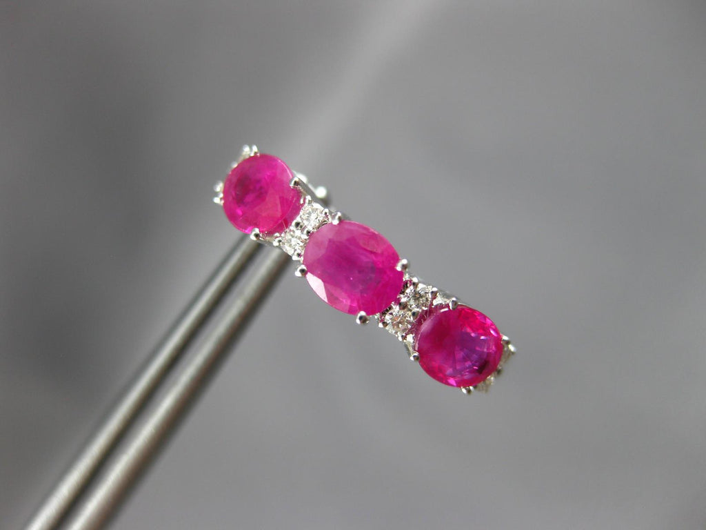 2.14CT DIAMOND & AAA RUBY 18K7 WHITE GOLD OVAL & ROUND 3 STONE HANGING EARRINGS
