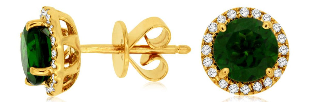 2.16CT DIAMOND & AAA GREEN GARNET 14KT YELLOW GOLD 3D ROUND HALO STUD EARRINGS