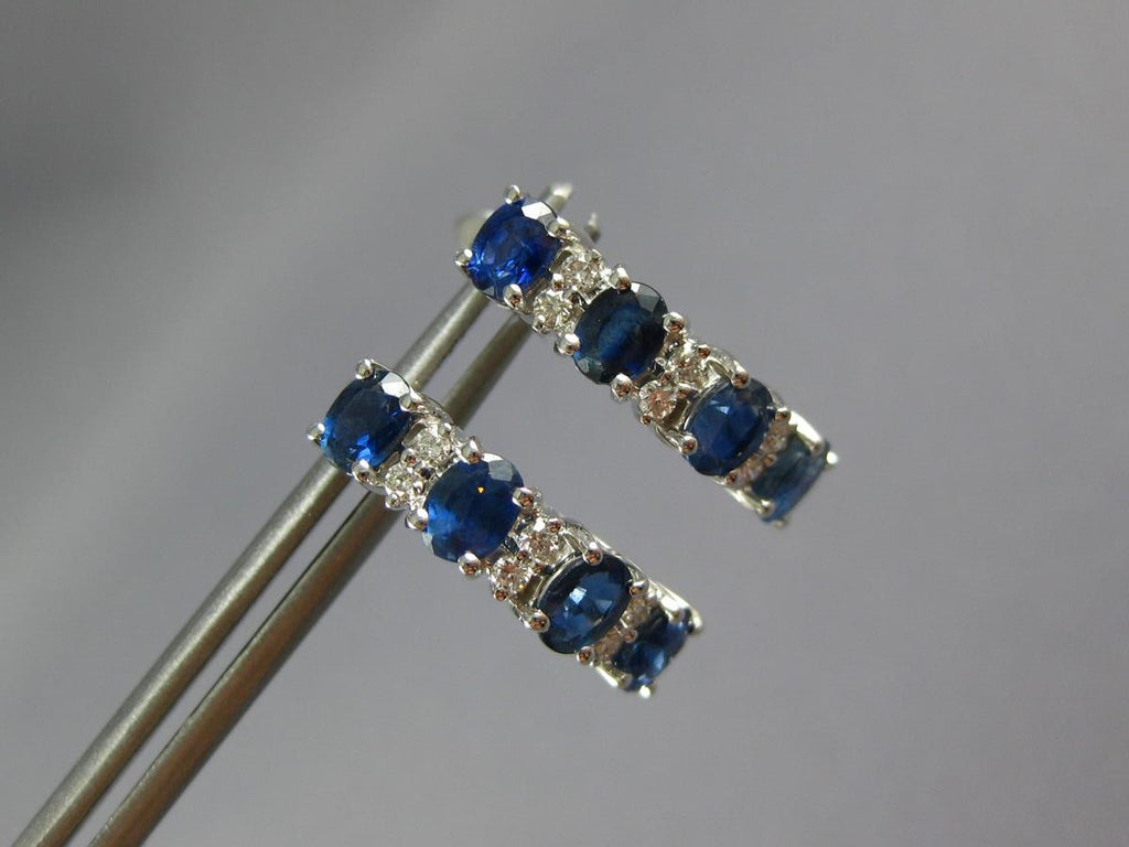 2.27CT DIAMOND AAA SAPPHIRE 14K WHITE GOLD OVAL & ROUND 4 STONE HANGING EARRINGS