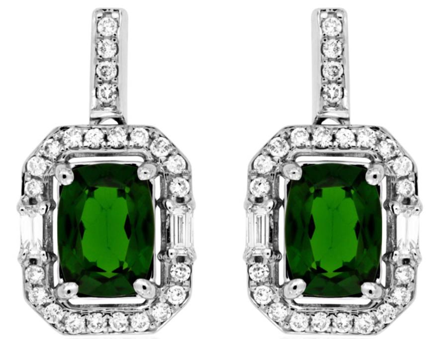 2.2CT DIAMOND & AAA GREEN GARNET 14K WHITE GOLD CUSHION OCTAGON HANGING EARRINGS