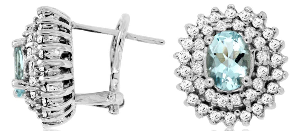 2.39CT DIAMOND & AAA AQUAMARINE 14KT WHITE GOLD 3D OVAL & ROUND CLIP ON EARRINGS