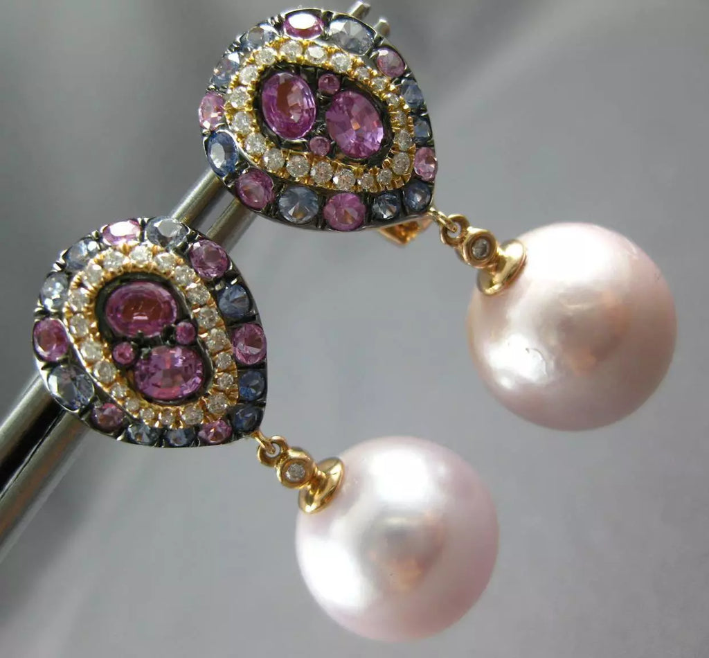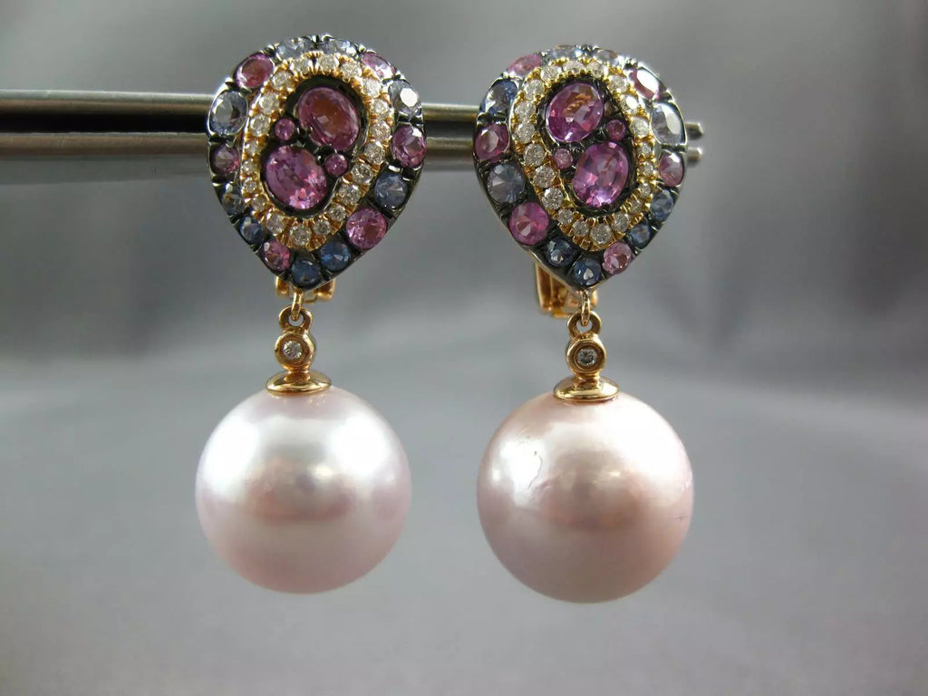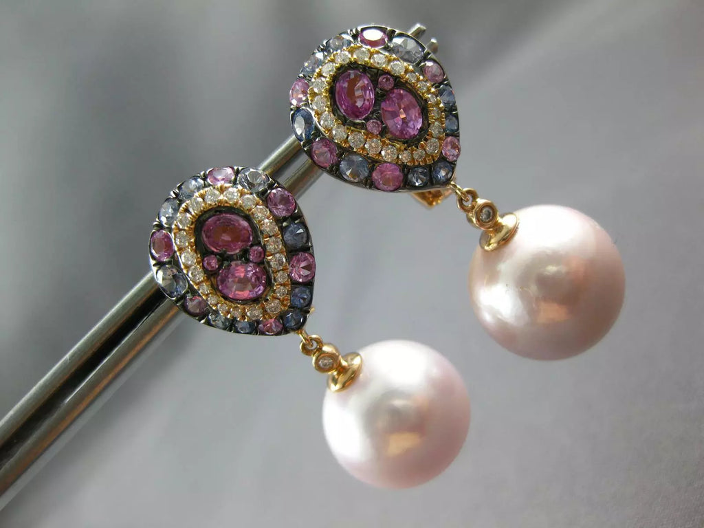 2.69CT DIAMOND & AAA SAPPHIRES & PINK SOUTH SEA PEARL 18KT ROSE GOLD 3D EARRINGS